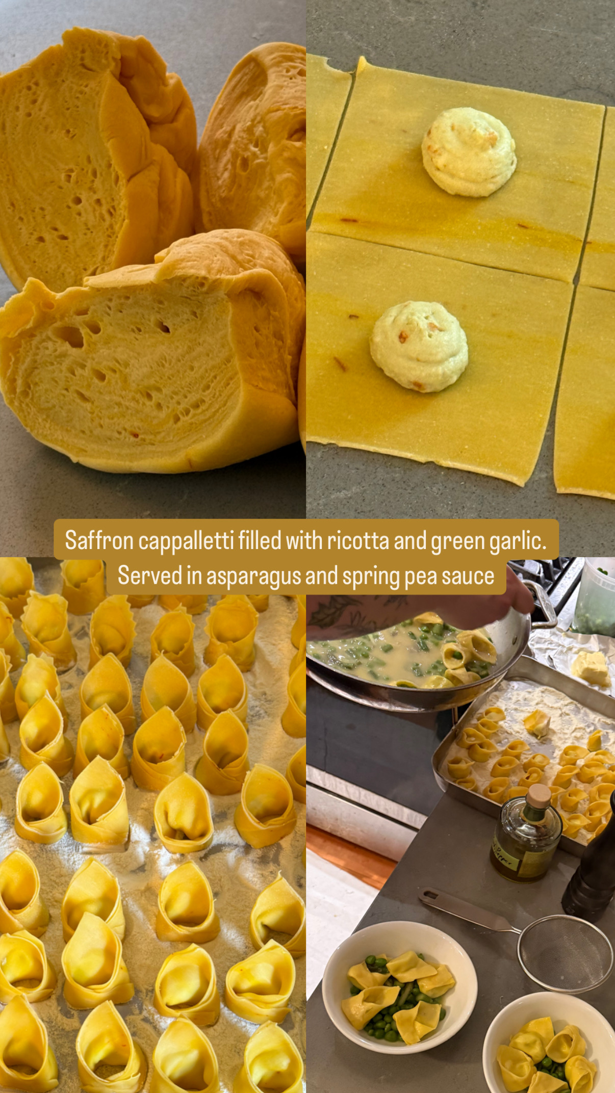 Stuffed with Bellwether Farms ricotta, orange zest and green garlic. Served in a brothy asparagus and spring pea sauce. Hand-formed with love and a lot of flour-dusted aprons.