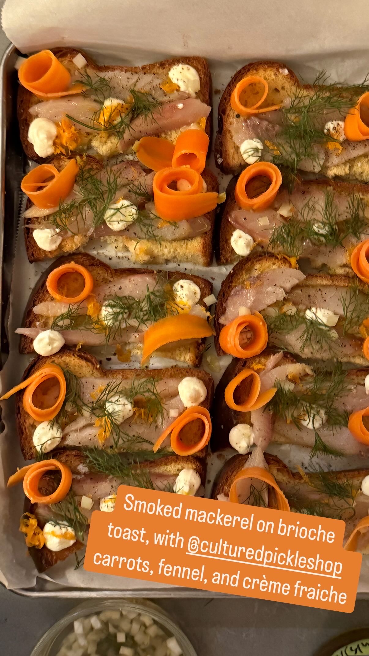 With crème fraîche, @culturedpickleshop fermented carrot ribbons, pickled fennel, and citrus zest. Smokey, creamy, acidic, soft—layered and indulgent.
