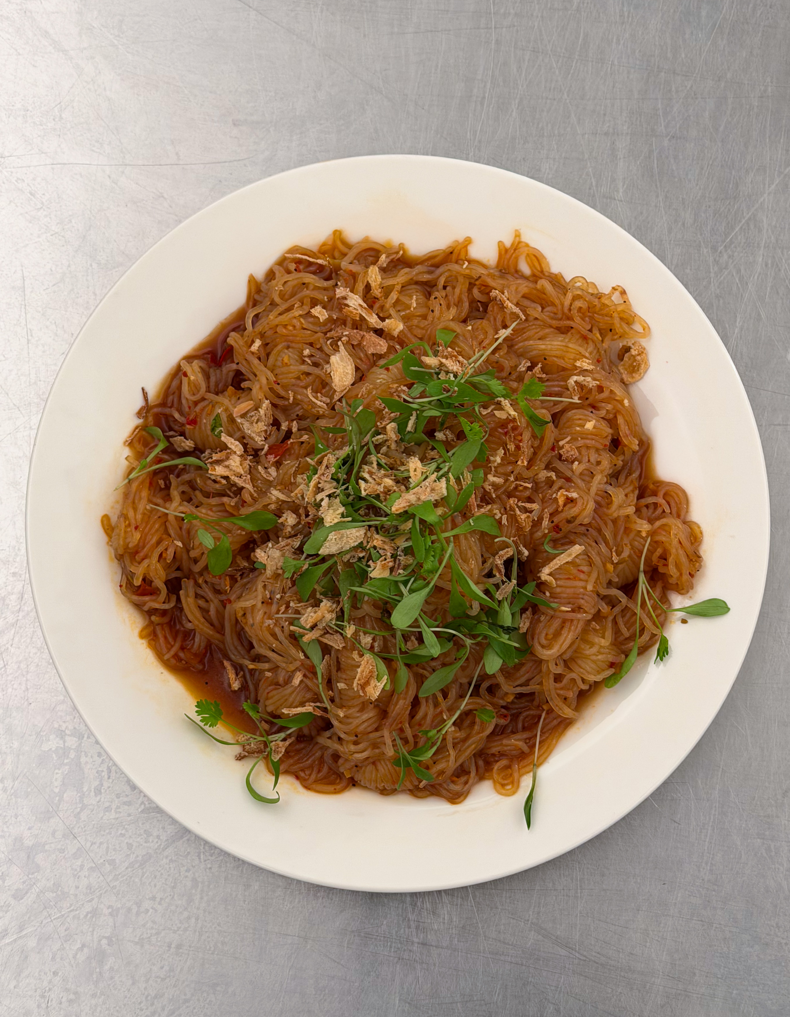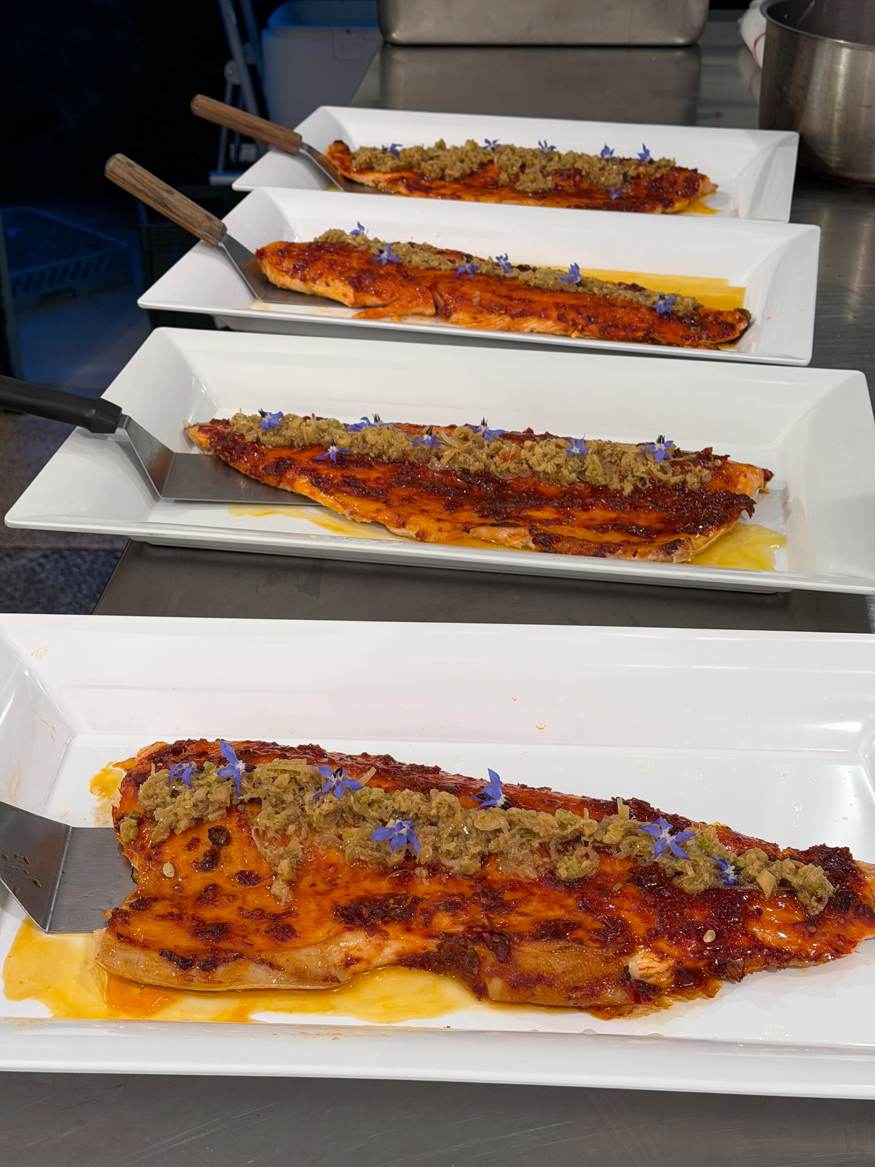 The main course was Mt. Lassen trout with doubanjiang, green garlic gremolata, and ginger scallion confit and konjac noodles with cucumber, black vinegar, tamari, chili, garlic, and peppercorn.
