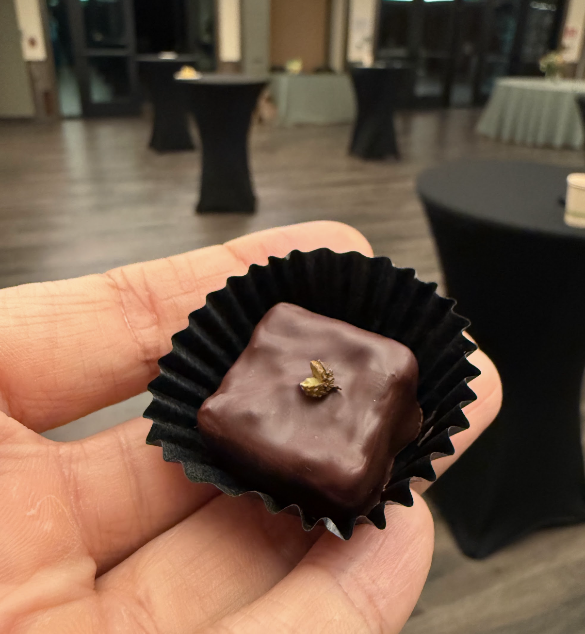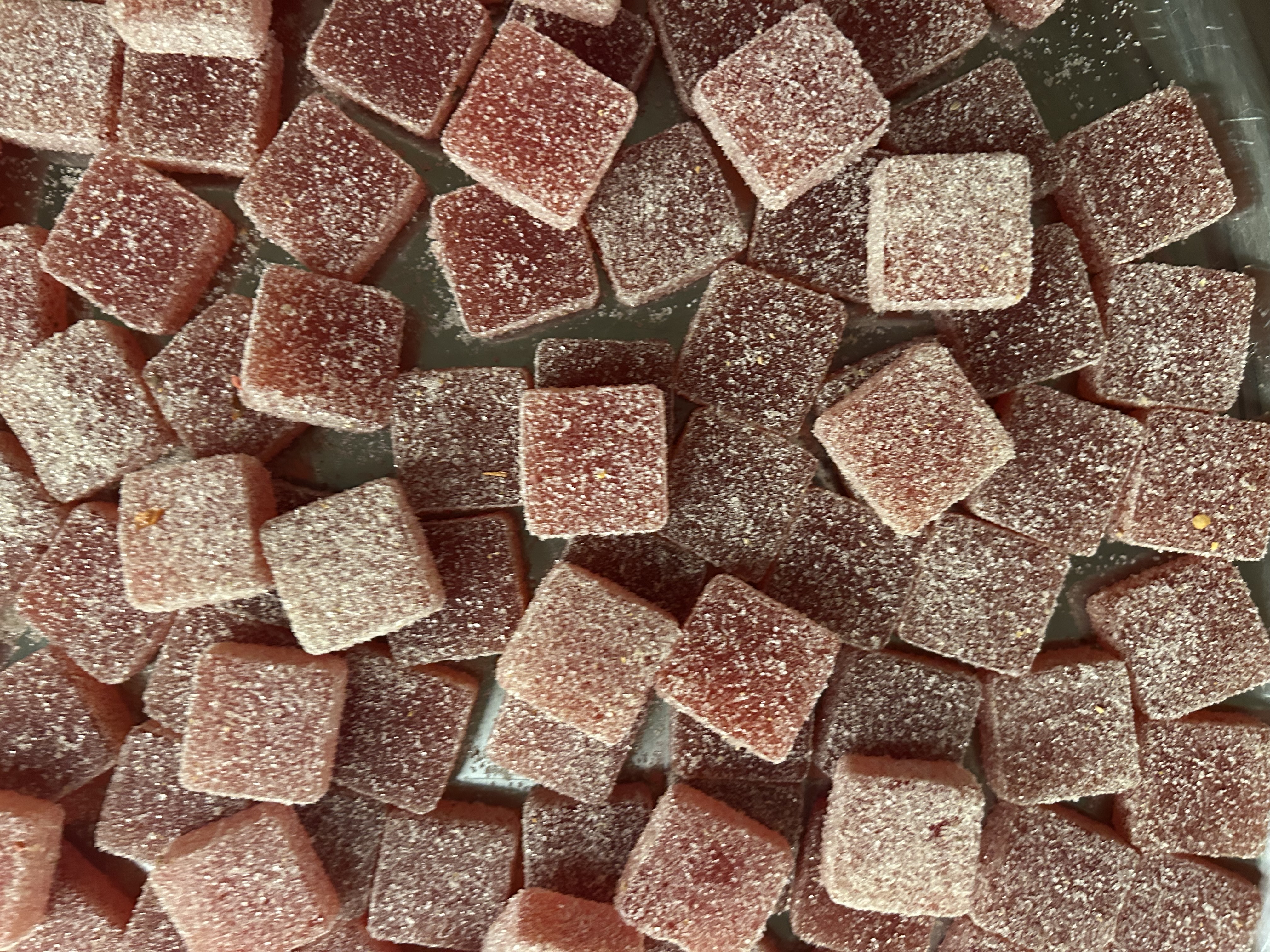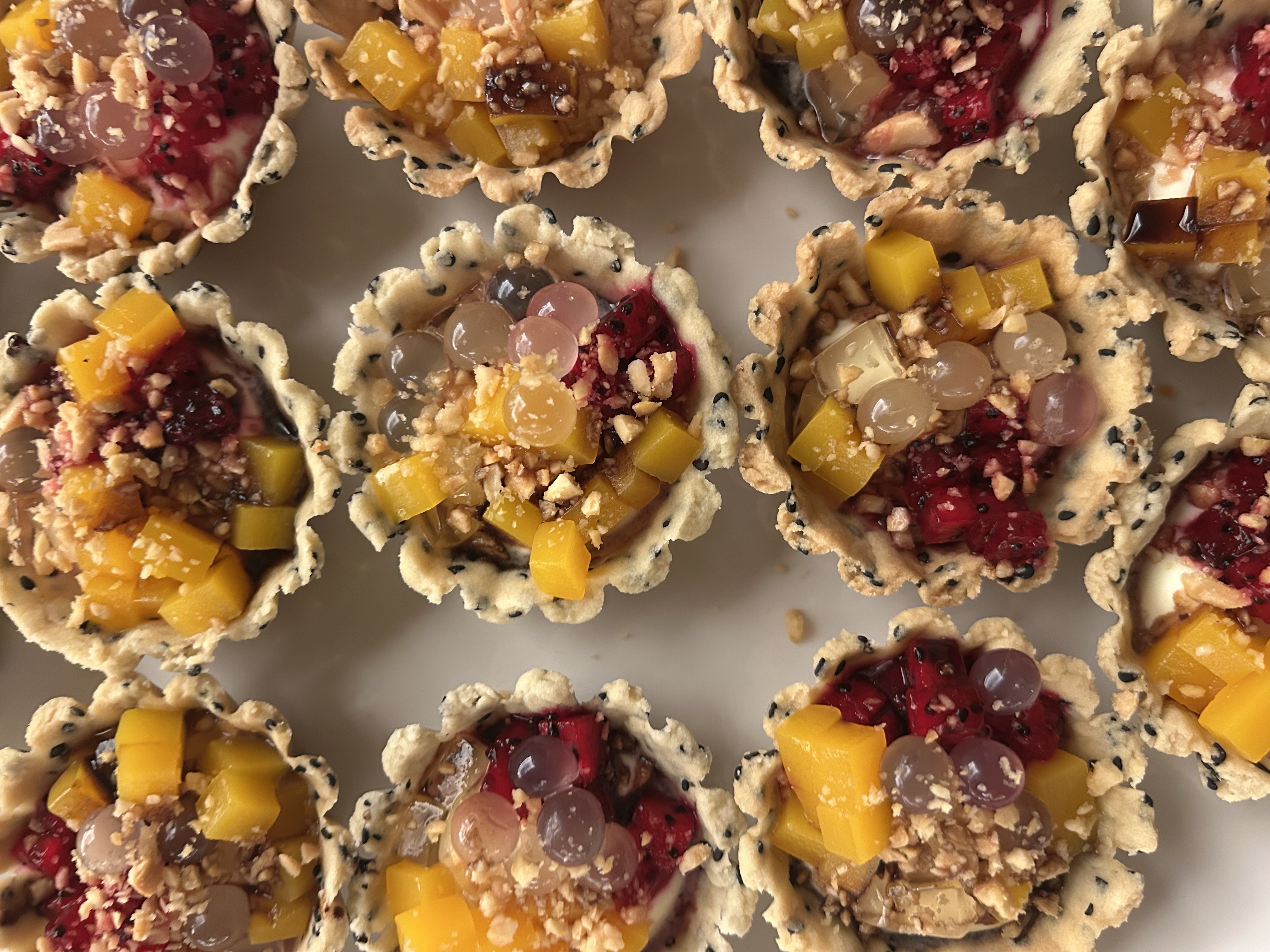 Dessert finished with strawberry shrub and Sichuan pepper pâte de fruit by Fork Full, chocolate bonbons by Flying Noir, and bingfen tart by Nanne.