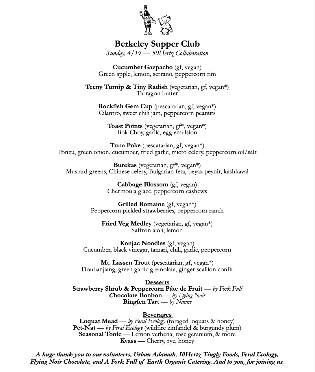 Thank you to 50Hertz Tingly Foods, Urban Adamah, Feral Ecology, Flying Noir Chocolate, A Fork Full of Earth, our volunteers, and to everyone who joined us at the table. We could not do any of this without your generous support.