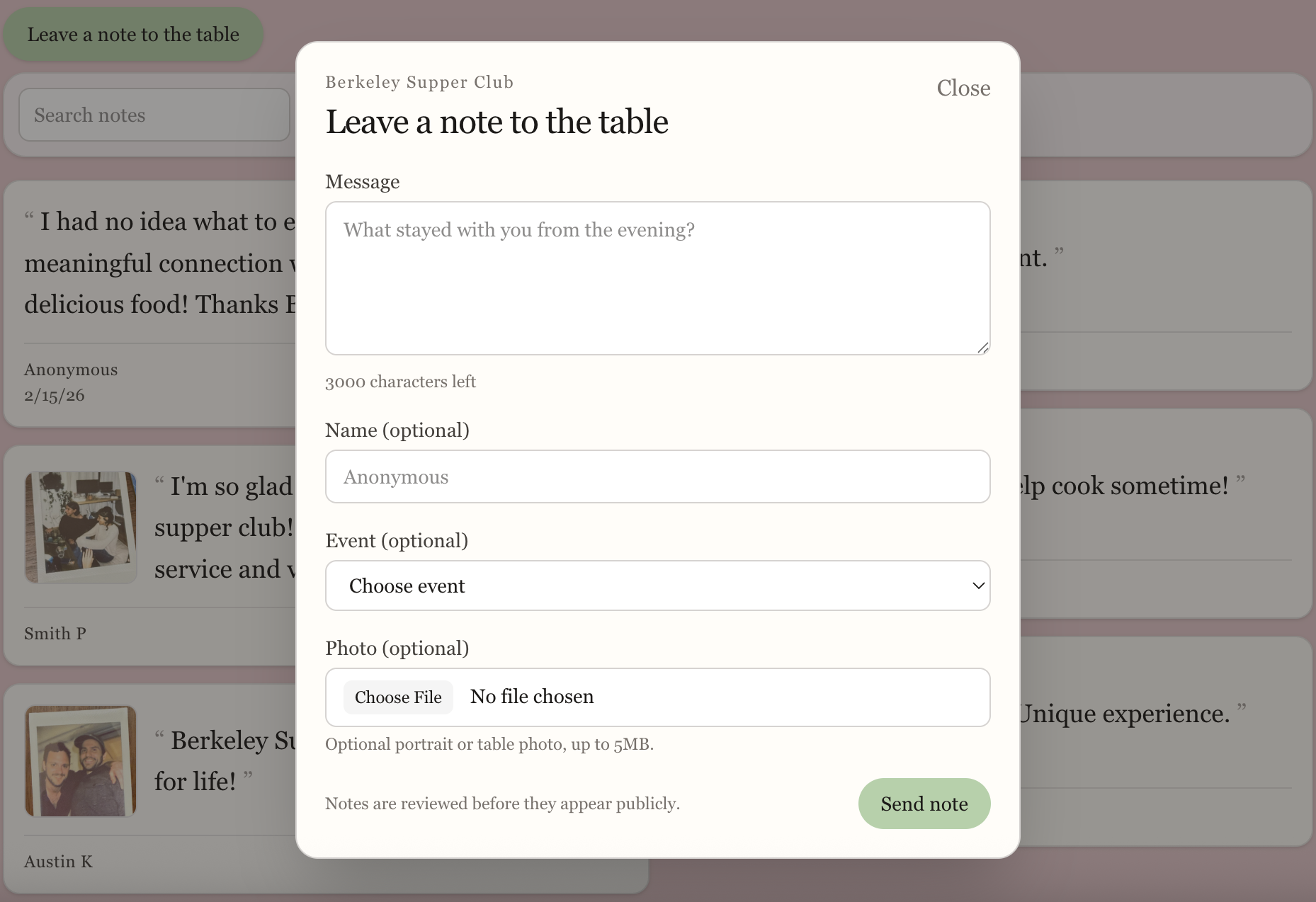 Introducing a low friction way to share your experience with others right on the Berkeley Supper Club website!